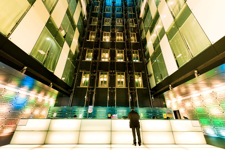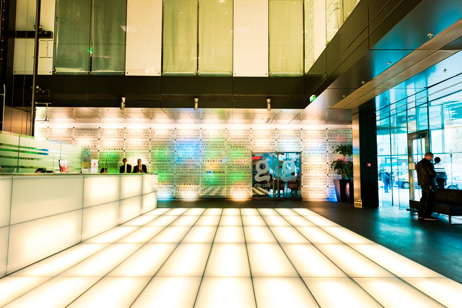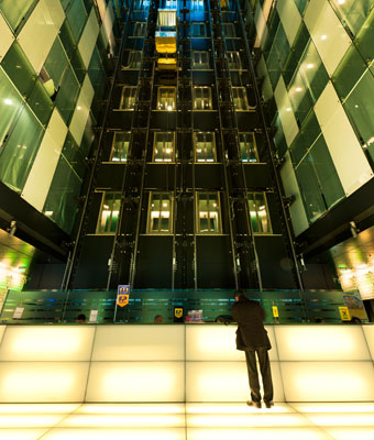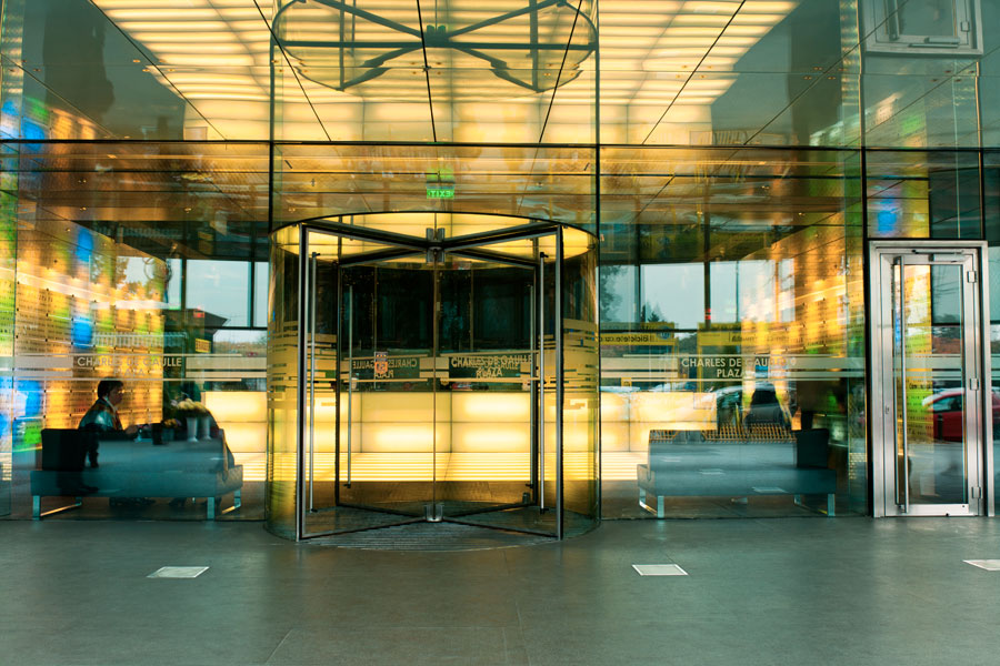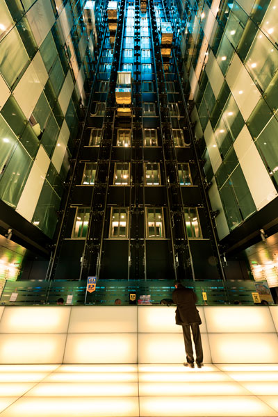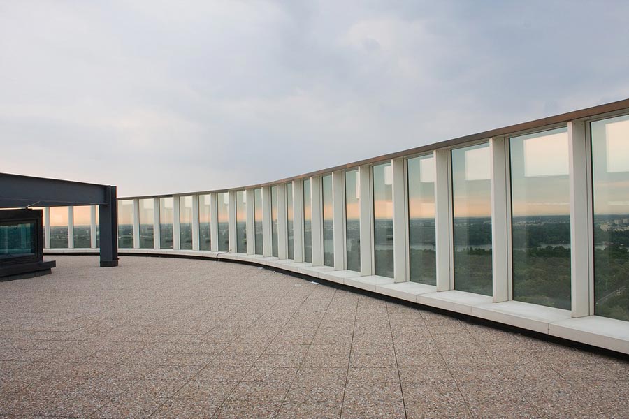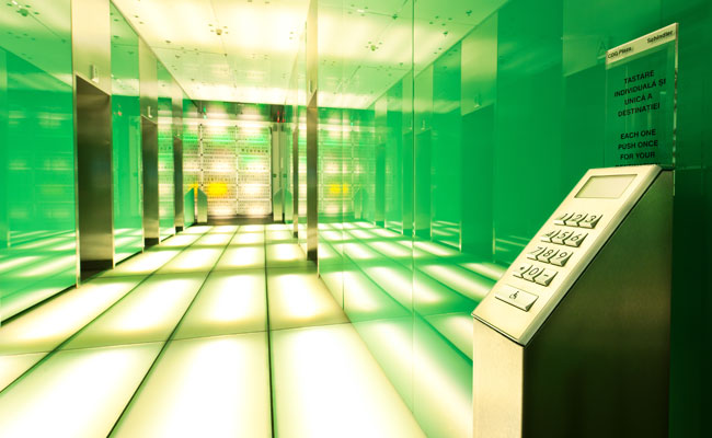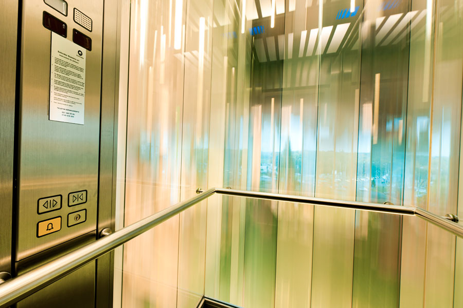 - 8 destination control elevators: 4 panoramic elevators, 2 operating the underground levels, 1 express between parking and top floor and 1 used for goods.
