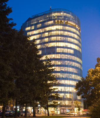 ARCHITECTURE. An imposing 17 floors steel and glass class A building, covering over 23.000 sqm of high-quality office and retail space. A state-of-the-art architecture, with a high atrium and 4 panoramic elevators, unique shape, master design and exceptional location.