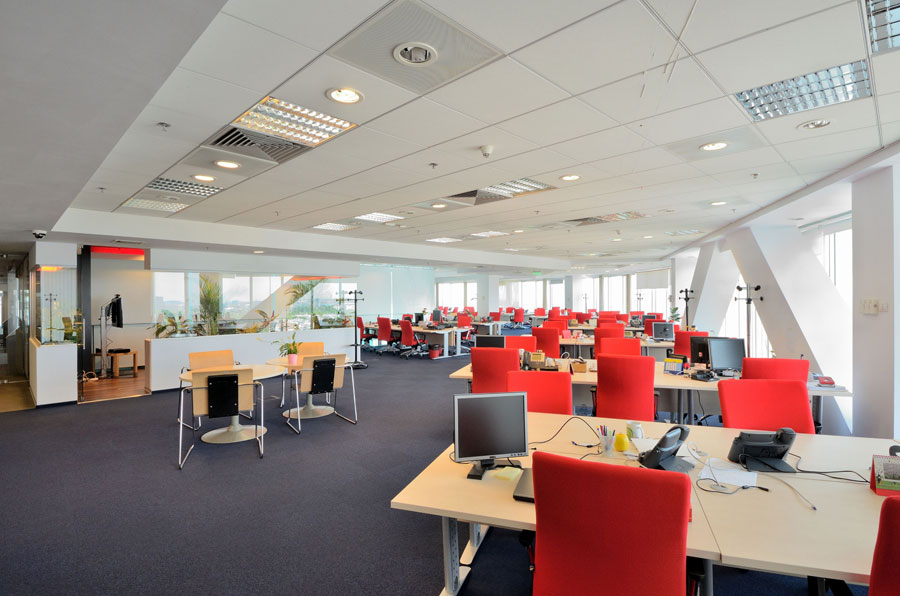 - Lighting at 380 lux average and up to 500 lux level per workstation.